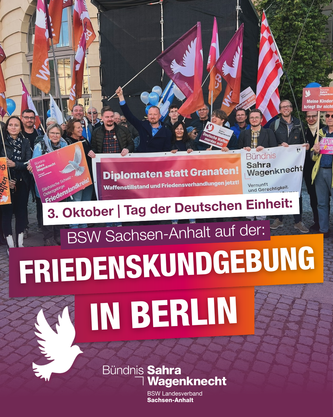 • 05 Okt. BSW Sachsen-Anhalt auf der: Friedenskundgebung in Berlin