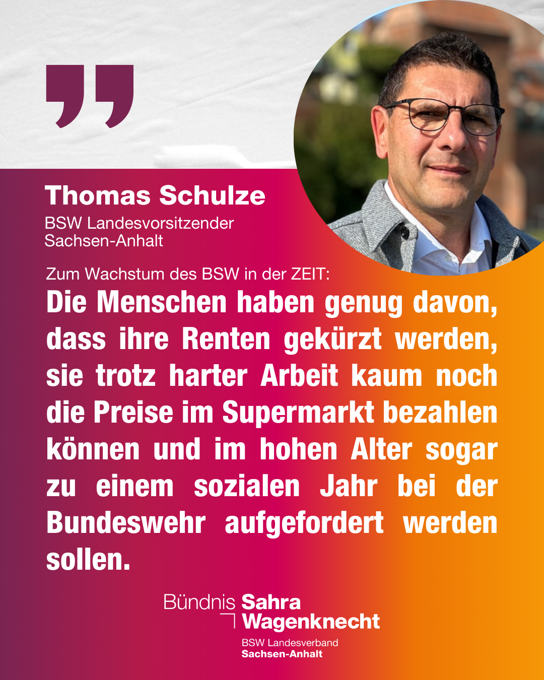 Dazu erklärt Thomas Schulze, Landesvorsitzender des BSW:
